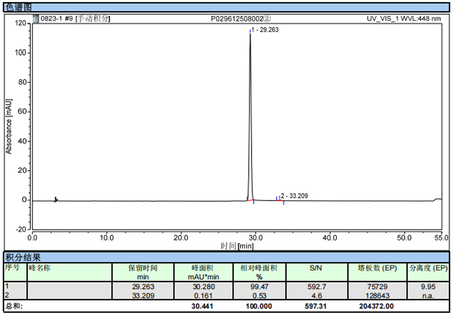 使用FDA批准的安全菌株,β-胡萝卜素含量>99.0%,且不含α-胡萝卜素及γ-胡萝卜素,符合食品、化妆品及饲料等高端应用标准;