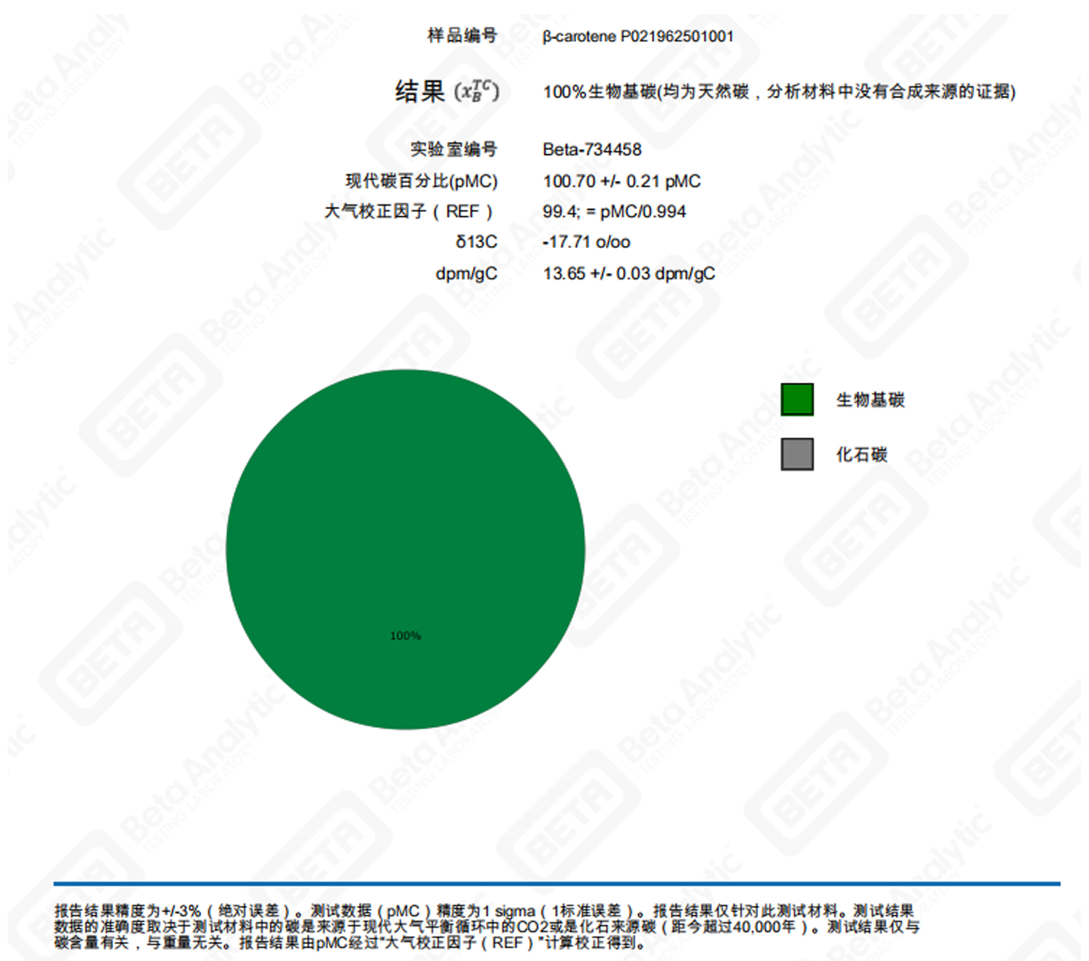 权威检测数据佐证,天然度指标达100%(100%生物基碳),更契合天然原料市场需求;