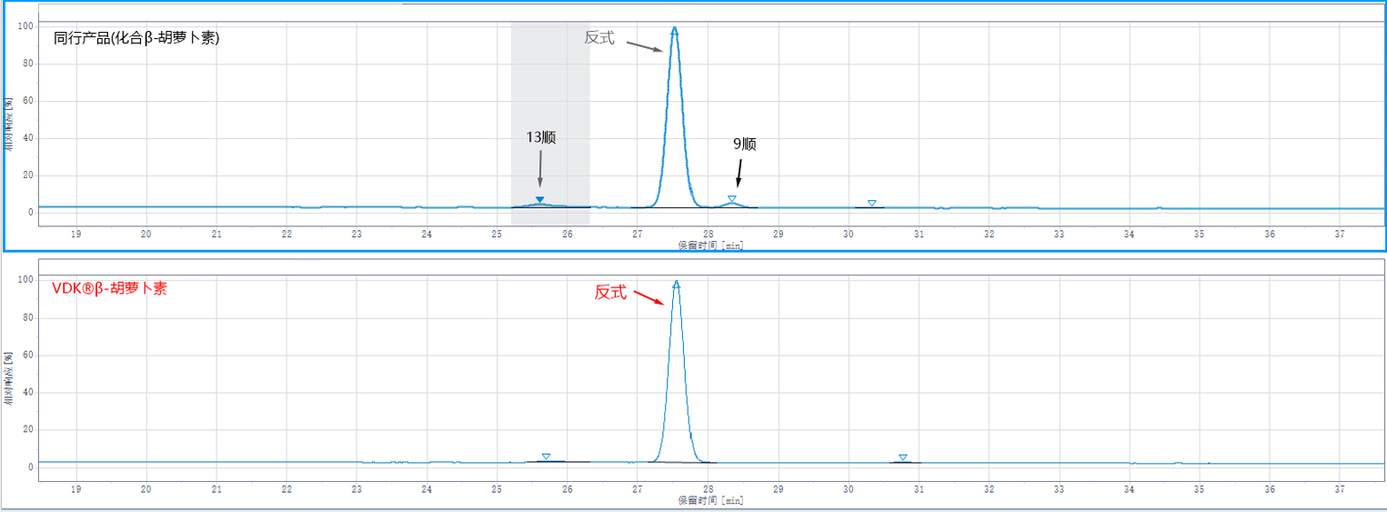 VDK®β-胡萝卜素跟同行产品对比,反式占比高: