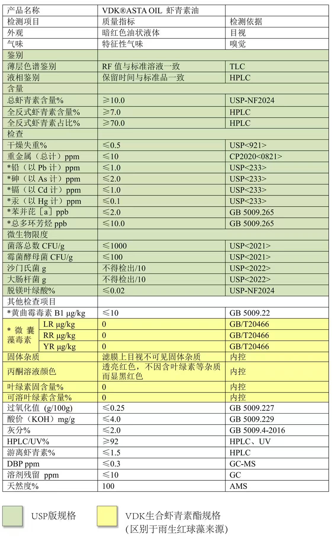 VDK® 酯化态虾青素含量规格(≥5.0%, ≥10.0%, ≥15.0%, ≥20.0%)及全反式占比 (≥70.0%,≥75.0%,≥80.0%,≥85.0%),可根据客户需求定制化生产